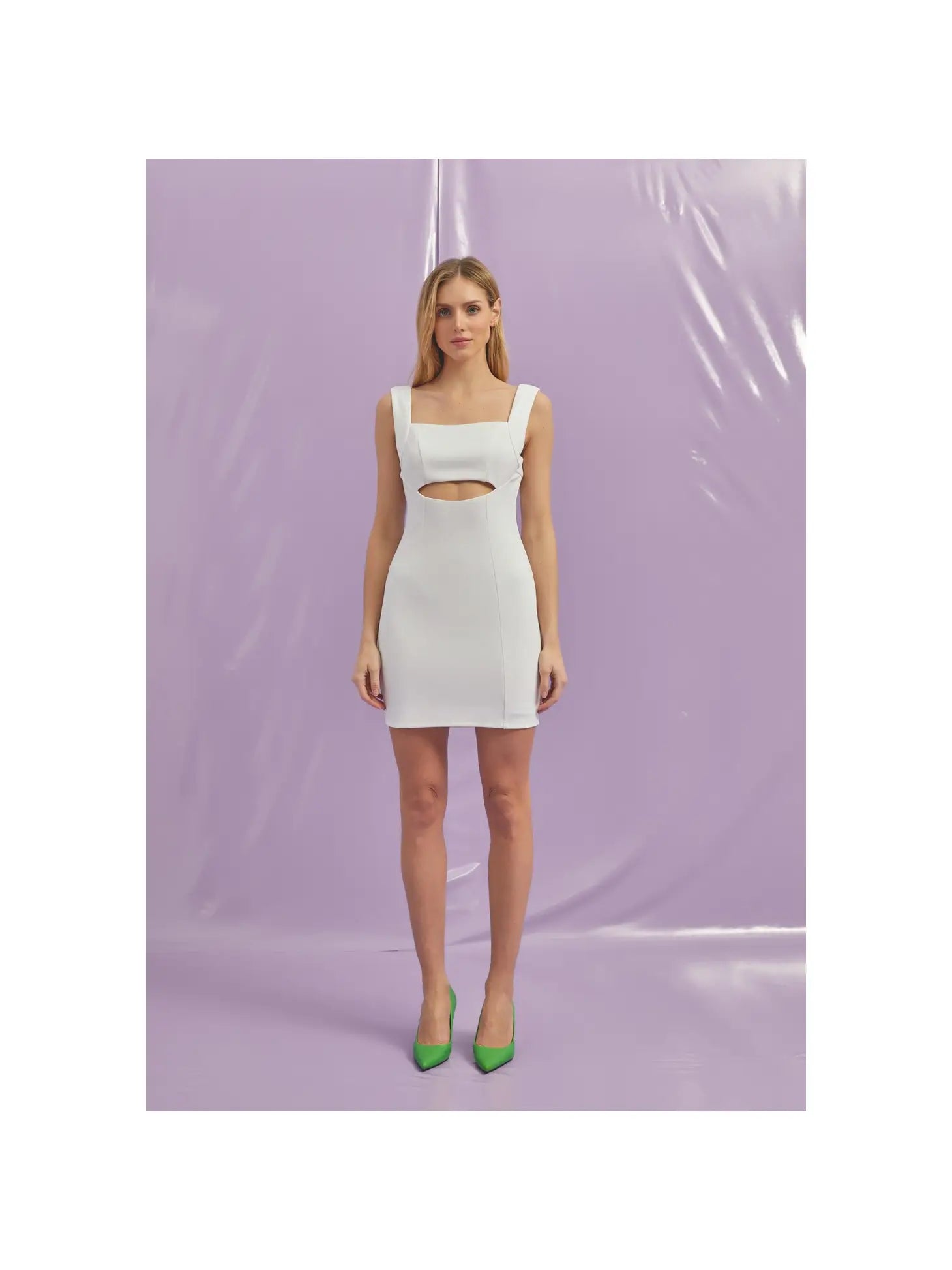 "Get ready to turn heads in the How Sweet It Is Dress! This white mini dress features a flirty cutout detail that is sure to make a statement. Perfect for a night out, this dress will have you feeling and looking sweet as can be.