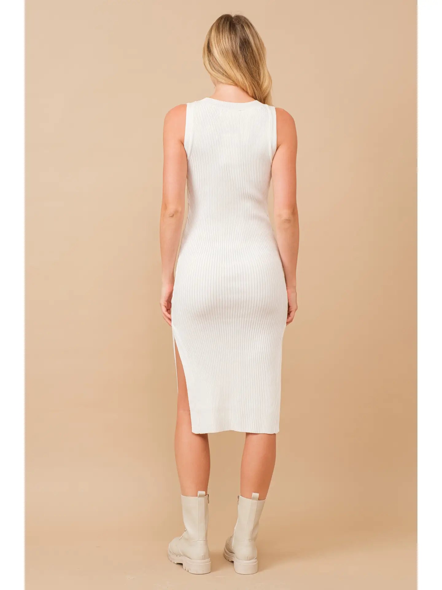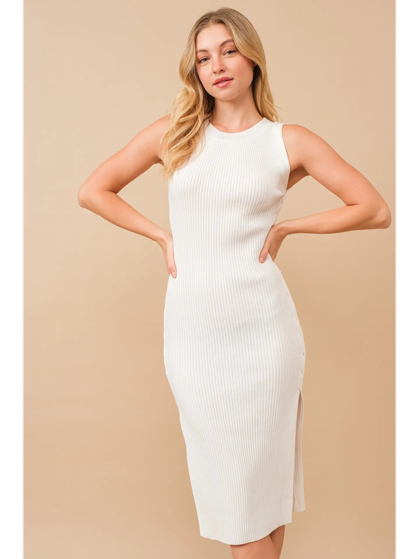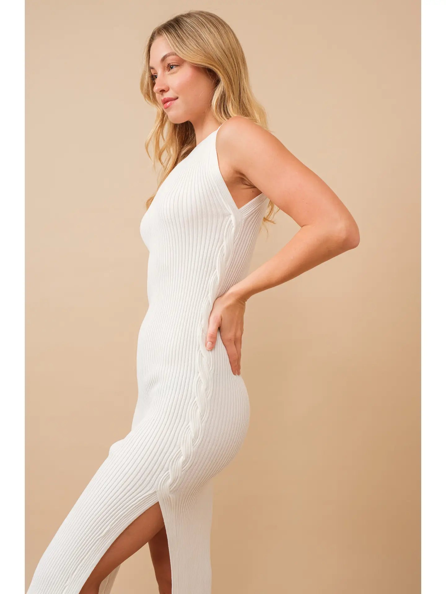 Get ready to turn heads in the playful and stylish Julia Ribbed Dress. With its heavy rib cable knit and bodycon fit, this sweater midi dress is both cozy and flattering. The side detail slit adds a unique touch to this dress, making it perfect for any occasion. Don't miss out on this must-have piece!