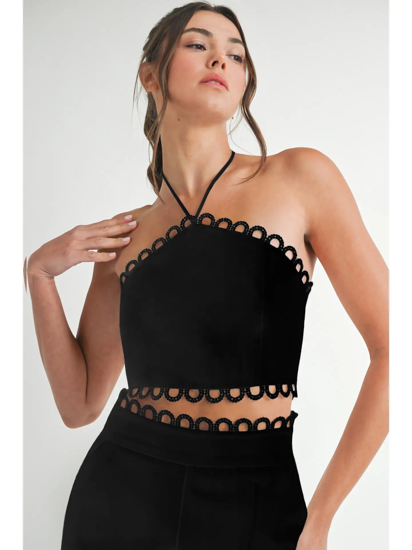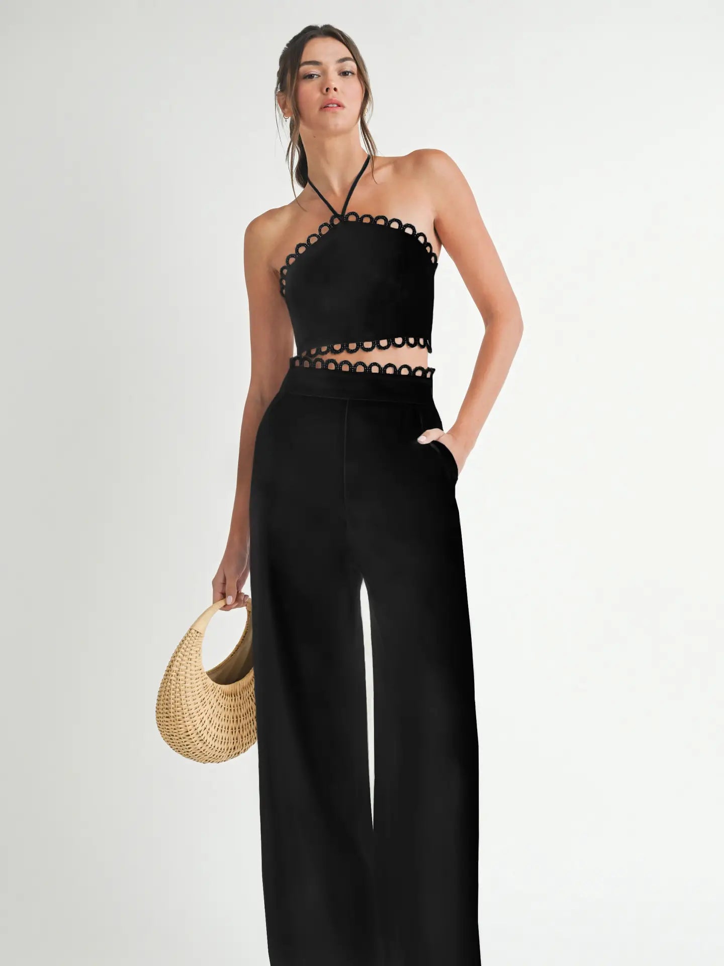 Get ready to turn heads with The Olive Set! Featuring a halter-style top with delicate scallop trim and a sleek zipper closure, this chic set flatters your figure while adding a touch of elegance. Made from soft, breathable linen and fully lined pants, it's the perfect balance of comfort and style. Ideal for upscale outings or resort vacations.